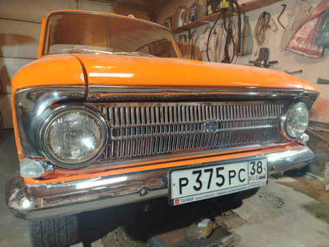 Собрал перед. Очистил хром и установил на машину. Получилось отлично. Установил новые подкрылки на место, новые фары. Поставил радиатор