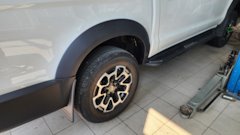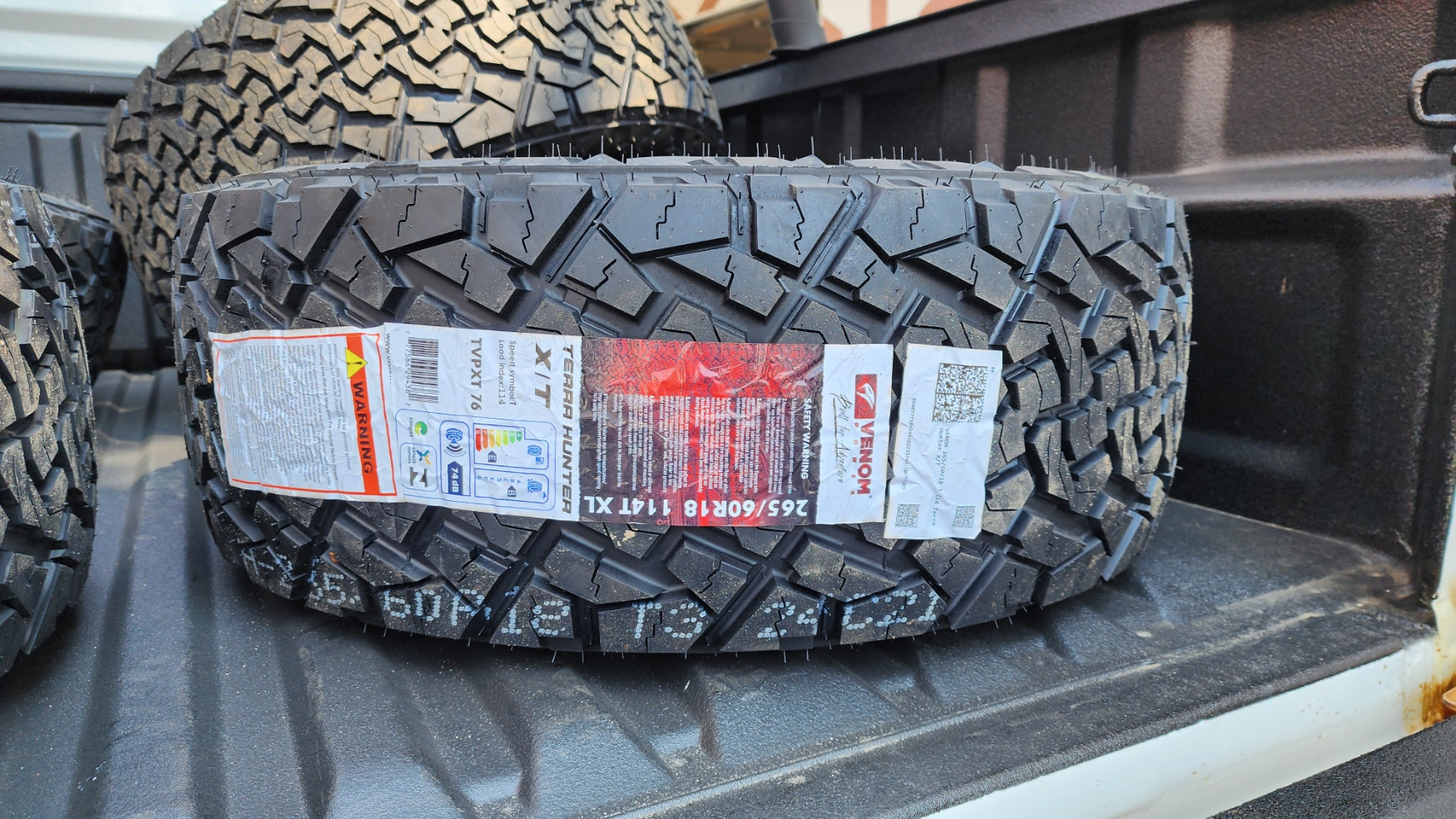 Поставил другие шины, но в том же размере, т.к. не хотел терять динамику и остроту управления. Шины Venom Power Terra Hunter X/T 265/60 R18 114T. Появился слабый гул после 40 км/ч, что логично для таких АТ шин.