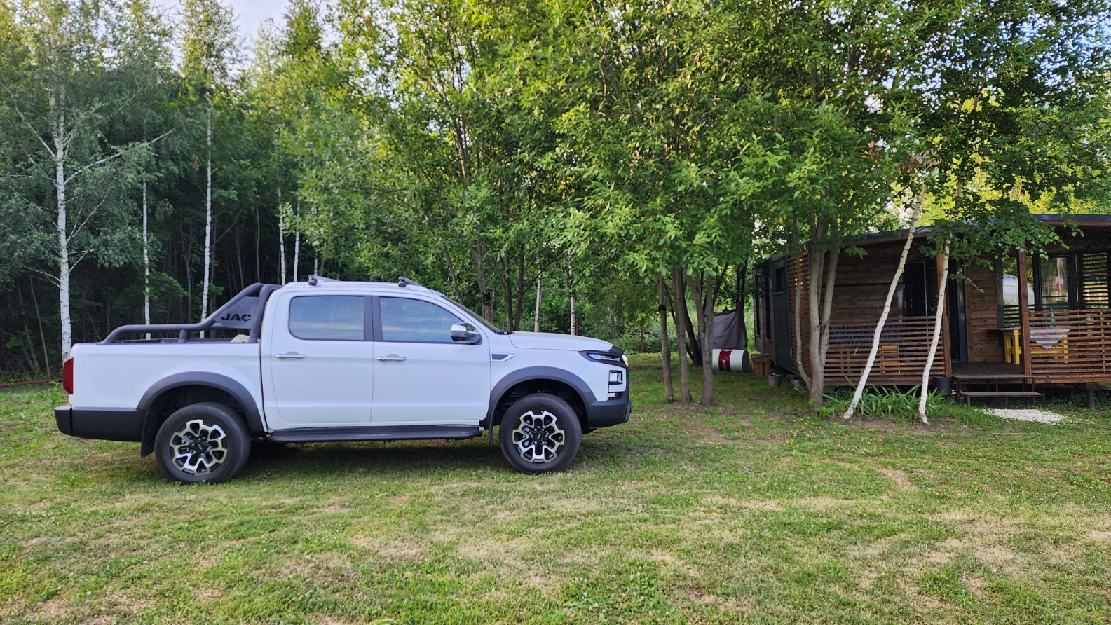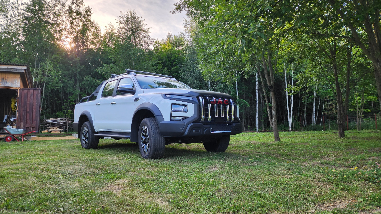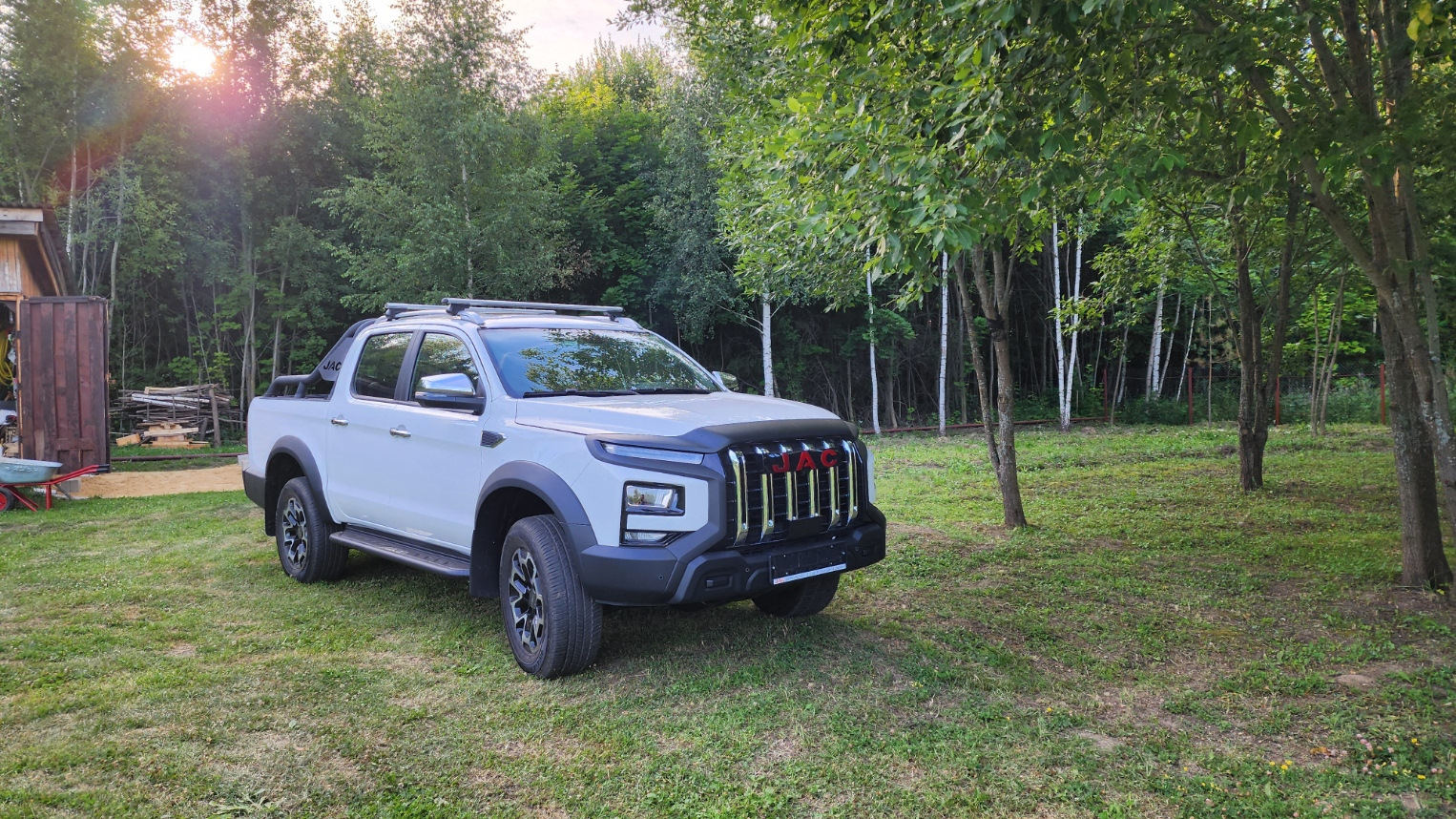 JAC T9. Брал для работы, возить на поддонах оборудование гидравлическое, кмпрессорное и т.п. Проехал уже 450 км, пока всё нравится. Подвеска непривычная для меня — все ямки стыки расходятся эластичной вибрацией по всему кузову. Сзади трясёт сильно пассажиров. Спереди комфортно.