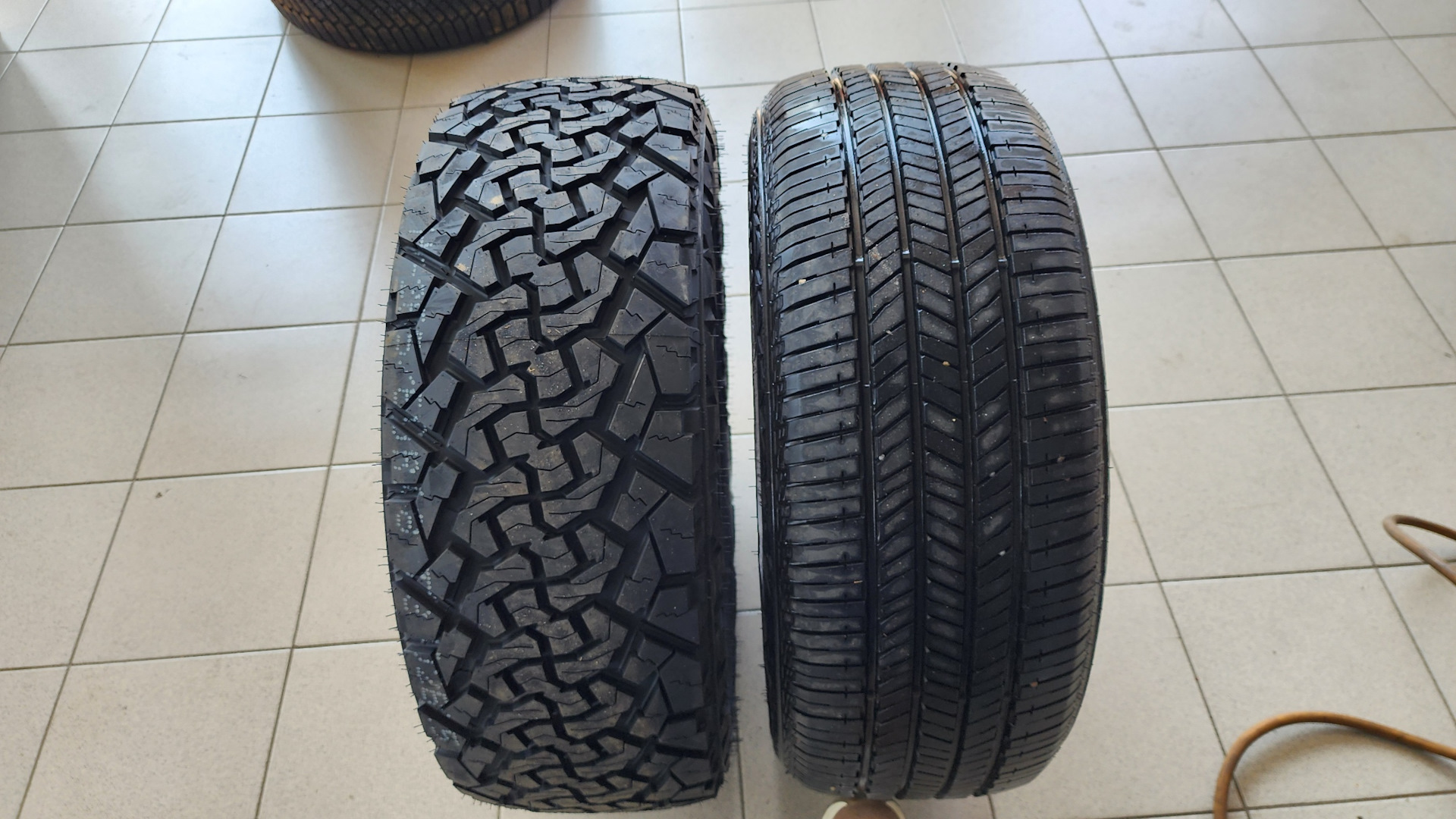 На родных шинах скользил по мокрой грунтовке с лужами, вот и решил взять AT.
