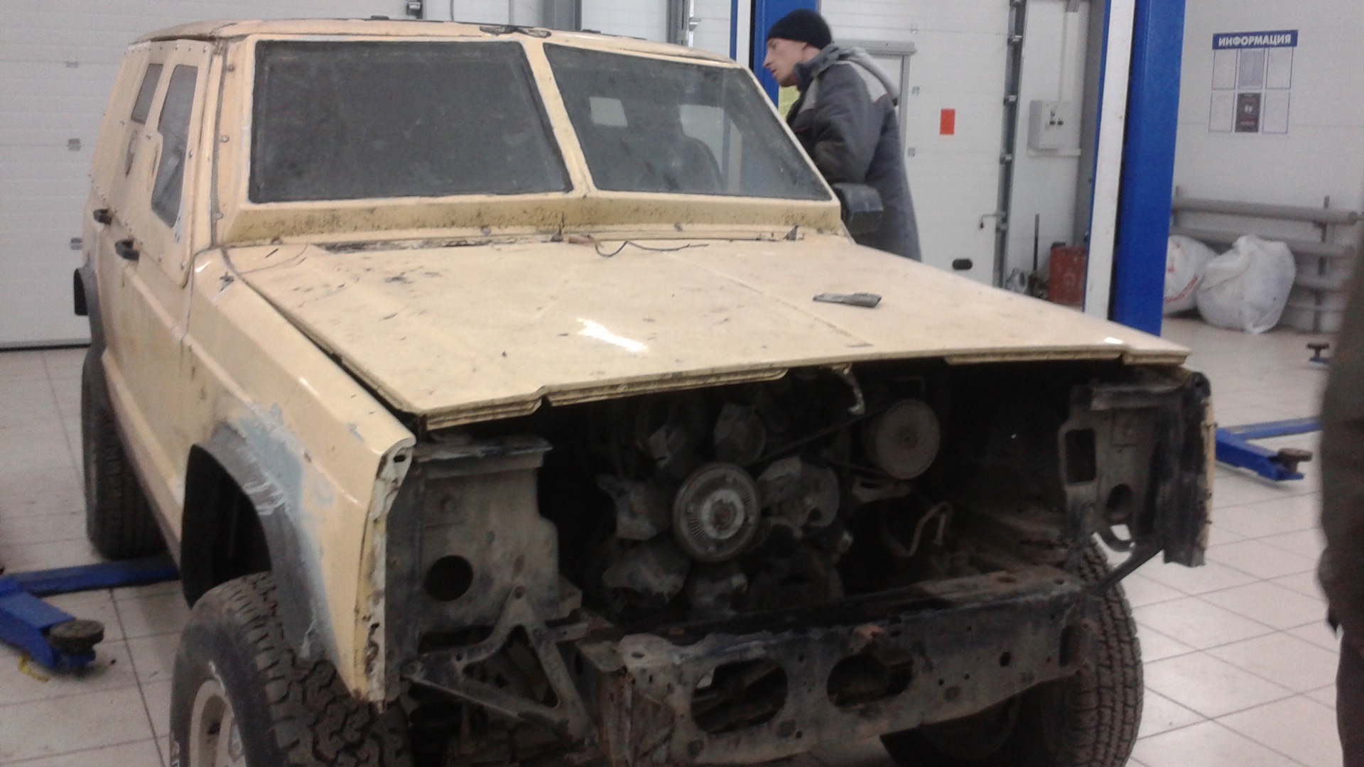 В общем 3Й по счету чироки у Женьки. Был взят у ЧПшников (до этого служил СБ). Уставший, очень уставший. Наверное его покупка — это был жест жалости со стороны моего друга. 4,0 литра, на ручке, убитый салон. Сразу же после покупки был загнан в сервис. В сервисе он простоял с сентября по апрель — 8 месяцев. Прогресса заметно не было, только регресс. Обсуждать это не могу, так как не я хозяин и не я договаривался. Делее Женька перетащил его к нашему логову и оставил до лучших времен. А сейчас пока финансовое положение позволяет его восстановить — я взял инициативу в свои руки: хочу помочь другу начать ездить…да и надоело подкалывать) В общем ПОЕХАЛИ!