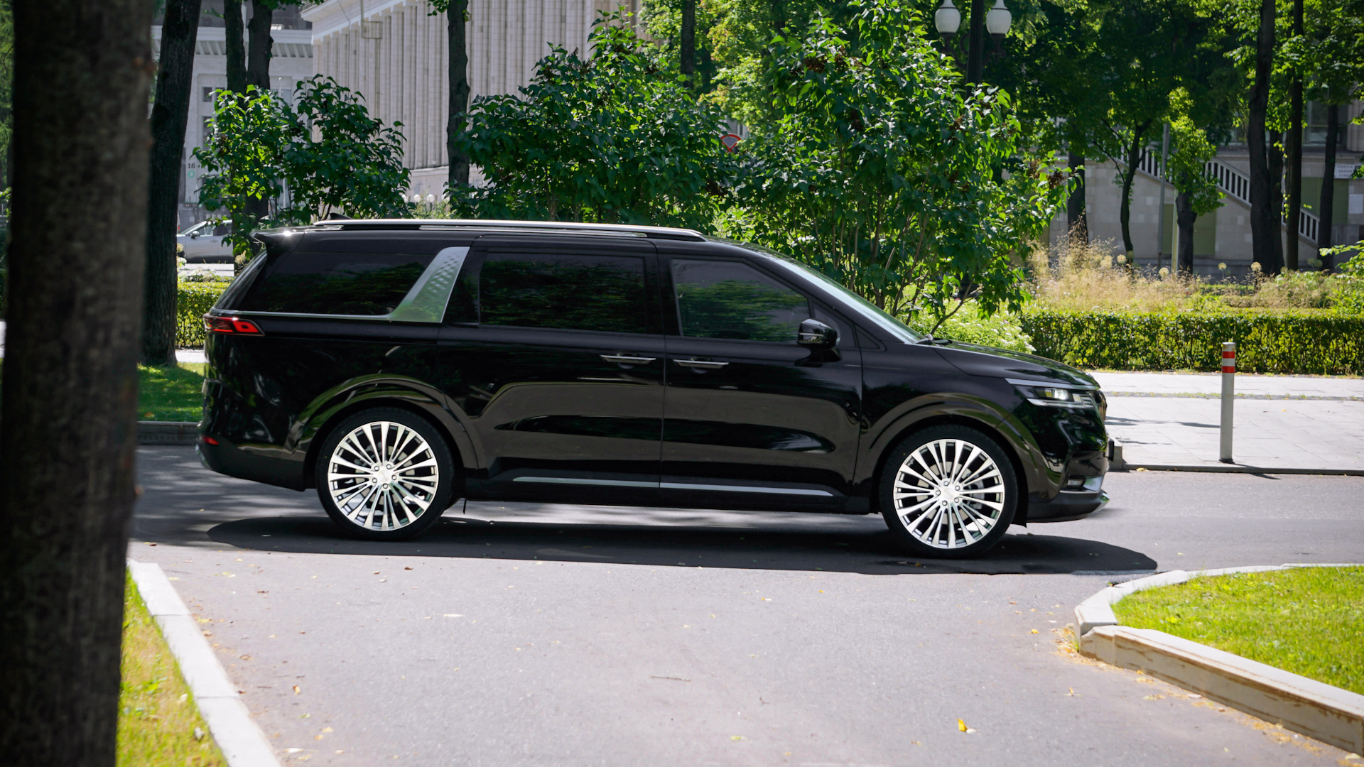 Чистый кореец, с американским характером. Автомобиль составляющий конкуренцию Chrysler, Toyota, Honda, Nissan, с их минивенами на рынке США. Огромная баржа, больше пяти! метров в длину и два метра в ширину. Очень комфортной и мягкой подвеской. Комплектация 9 мест, из них 6 в виде отдельных сидений, остальные 3 в виде раскладного дивана. Практически все возможные современные опции включая два 12 дюймовых дисплея, с помощниками, цифровыми приборами и мультимедией. Двигатель турбо дизель 2.2 литра на 200 сил, с записью в птс на 150))) Слава богу стоит классический автомат на 8 передач, а не робот. Колеса 19, с новейшей моделью резины 20 года от Continental. Куча USB, розеток, подстаканников, шторок, настроек сидений и тд.