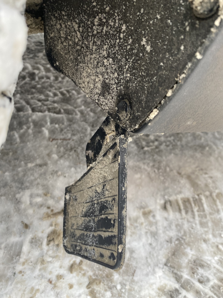 Приветствую, сегодня обнаружил технический просчёт, брызговик крепится на Г-образном ухе и Одной клипсе. И снегом выдавило его на раз