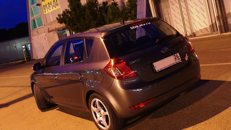 Расскажу немного про выбор авто. Изначальный бюджет составлял приблизительно 600т.р. Естественно, за эти деньги выбор огромен. Нужна была машина для семьи с кузовом хетчбэк или универсал. Ох сколько ж их было перещупано. Очень хотелось Фиат Браво. Судя по описалову зачотная машина, с хорошими характеристиками, оснащением и т.п. Но блин, дилер у нас, мягко говоря, неадекватен, т.к. ломил цену плюс 100т.р. от цены завода, указанной на официальном сайте. Увы, но пришлось отказаться от этой затеи. Затем пошли в ход шевроле, опели, рено, тойоты, хёндэ и т.п. Но либо откровенно не устраивало качество и комплектация, либо цена. В итоге выбор происходил между Skoda Octavia Tour и FF2. Шкода всем хороша, но немного устаревший дизайн немного отпугивал. FF2 тоже ничего, но в нашем городишке дилер форда наглел не по фигне, загибая цену как минимум +75т.р. от стоимости в калькуляторе на офф. сайте. Это выяснилось после звонков дилерам в Краснодаре и Ростове, где с ценами все в порядке, есть много авто в наличии. Короче было из чего выбрать. У нашего же дилера авто в наличии с гулькин нос и ждать ПТСку год (были прецеденты и довольно часто) желания не было. В общем моск взрывался. И тут с утреца вспомнил про Киа. Залез на их сайтец. Увидел сиида и поехали с родителями щупать. Понравился он нам с первого взгляда. Салон тоже вполне. Мягкий пластик салона, аккуратно все. В наличии было 2. Один цвета Phoenix Silver в базе на механике. Второй обычное серебро на механике в люксе. Были и автоматные, но автомат не приемлю в принципе. Решено было брать первый, т.к. серебристых машин по городу пруд пруди, да и к тому же смысла переплаты за климат, 16-е чугуниевые диски и прочую мишуру я не видел.