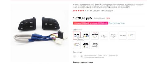 Заказал с али кнопки на руль от киа спортаж (с серым шлейфом) и особо не стал ждать.