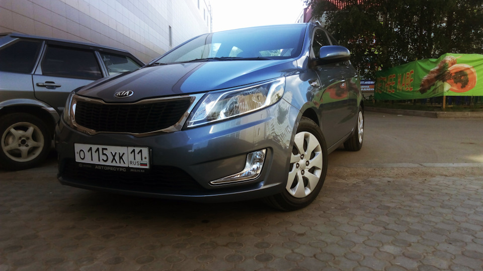 KIA RIO III 2014 года выпуска. Куплена у ОД ООО "Авторесурс Моторс" в г. Сыктывкаре.Комплектация Comfort RS (с теплыми опциями), Двигатель 1.4. 107 л.с. АКПП. Мне по городу вполне хватает. Сразу приобрел комлект дисков KI52 R15, зимняя резина досталась в подарок от ОД.