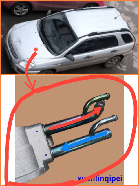 Направление потока антифриза в системе охлаждения G4GC 2.0 бензин KIA SPORTAGE 2008