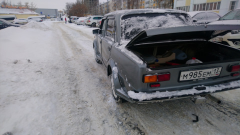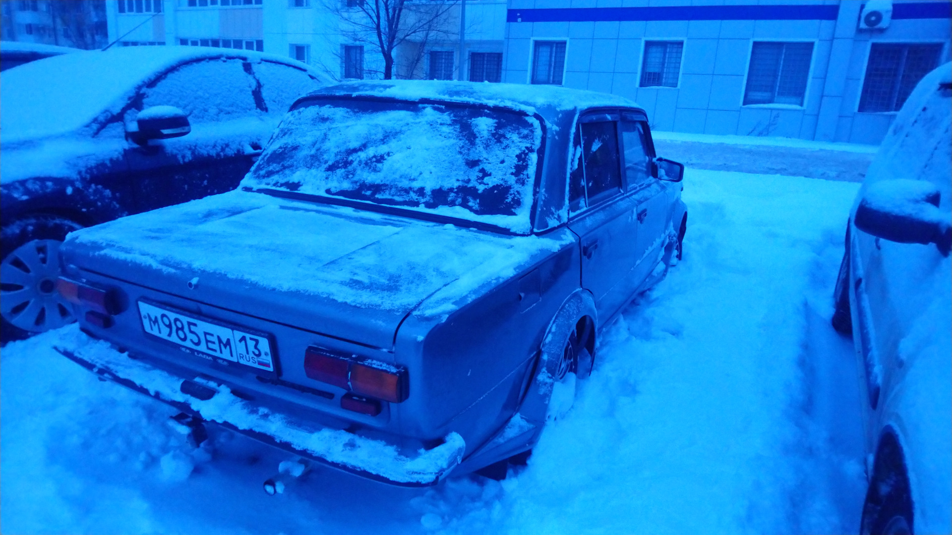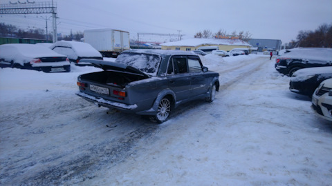 После дербана второй своей "копейки" — стало немного скучно. И как-то лазив на авито, наткнулся на неё, фото было так себе (сзади), открыл посмотрел, в обвесе, на дисках… Несколько дней думал нужна она мне или нет… Далее долгие переговоры с продавцом. Посоветовал с женой — дала добро, — решено брать. Машина в Мордовии, я в Одинцово. С работы отправляют в командировку в родной Ульяновск, неделю работаю — на выходные договариваюсь приехать посмотреть, и если все ок — забираю. Заранее договорился с братом, поехали, ехать примерно 250км. Приехали в 8.00 как и договаривались, откопал, посмотрел — в целом всё хорошо, замята дверь водительская (поправлю). Завели, прогрели, перекусили и поехали. Ехать было то ещё приключение, на дисках налипло снега и руль ужасно бил, заехали на заправку, полный бак, ещё км на мойку сбить снег с дисков (биение прошло) и погнали на родину. Дорога была без приключений, но 250км на 16-ом лете — это тяжело. Скорость 60-90. Выехали в 3.30, вернулись в 17.00. По приезду брат тут же махнул руль. Поставили на стоянку до весны.