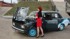 А если говорить о стиле, то аэрография на Жигулях как раз и является показателем полнейшего отсутствия вкуса:) И где связь между цветом кузова, и цветом дисков?) Хотя, может я просто не распознала тайной задумки… Машина-радуга:)