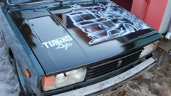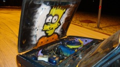 Подкапотное выкрашено в феолетовый, голубой, синий и жёлтый цвета. на капоте с обратной стороны Барт симпсон)