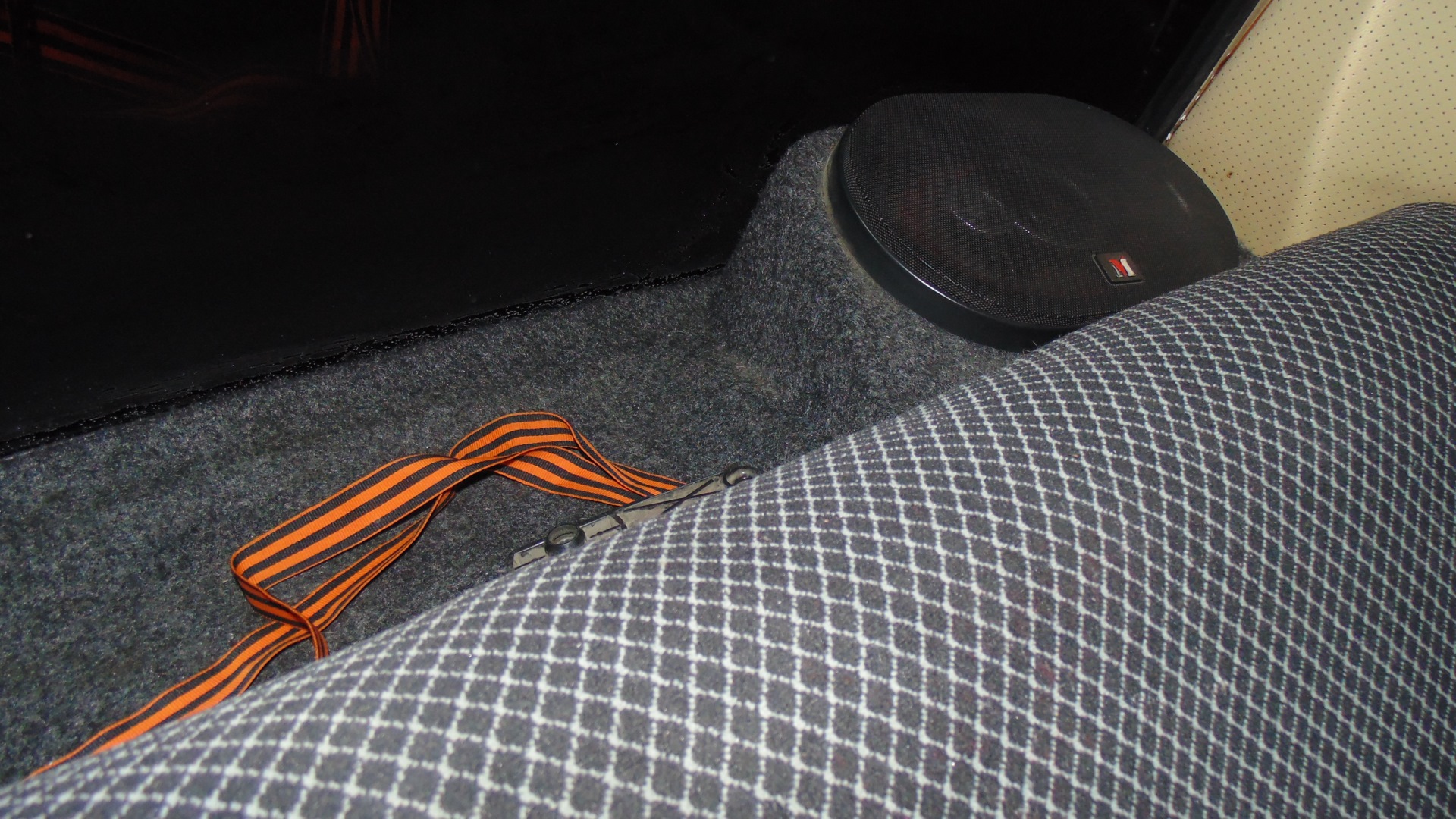 4)Салон:(Сидушки решил не менять потому что парень я не маленький а на японских я в потолок головой упираюсь)))))Сделал музыку магнитофон Mystery установил в изготовленный мной каркасик делал дня 2))))Спереди сделал подиумы под динамики, ссади установил акустическую полку с блинами, В багаге валяется буфак ВДВ)))Качает вроде не плохо мне нравится)))