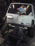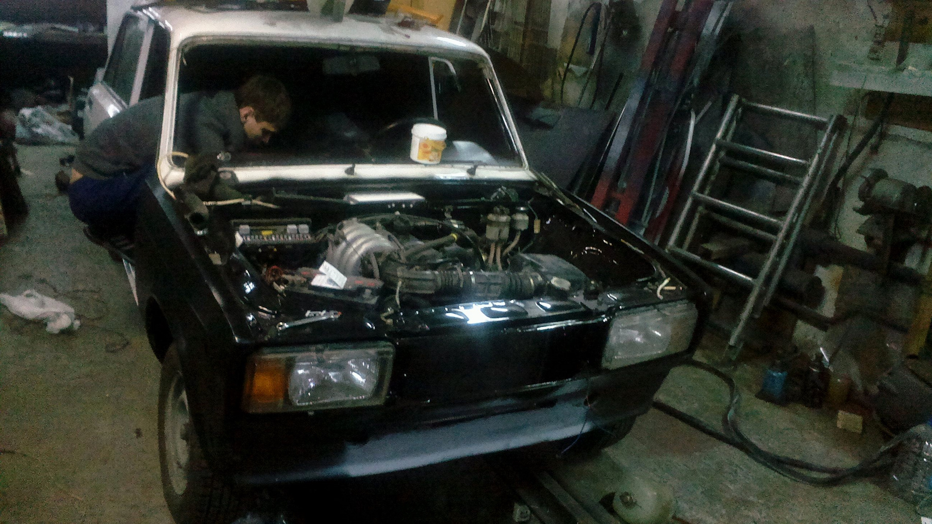 Машина куплена за 13500 ))) ударенная морда, ушел лонжерон, краска частично облезла. Переварил лонжерон, новый телевизор, передние крылья на клепках — легче менять будет =)