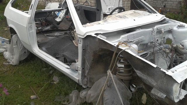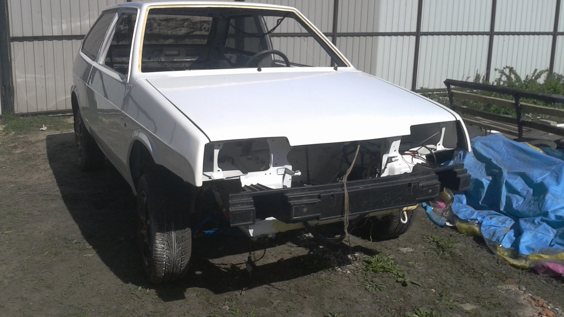 Купил я эту бестию сразу же как получил права, дырка на дырке машинка сгнила, под ногами водителя под ковролином лежал кусок фанеры что бы ноги не провалились:D. Решил я сделать её: переварил днище, лонжероны пороги, покрасил (на то время ещё балончиком), поменял ходовую, заменил кольца в двигателе, поставил высокую панель. В общем машинка зажила новой жизнью. Год стояла в гараже, ждала меня с армии. По приходу решился купить ей литые диски Racing Wheel Classic R14 резину выбрал Cordiant Sport. По лету 2013 года ездил на ней в г. Анапу, от меня примерно 1500 км. Нечего не сломалось, по приезду решил сделать машинке подарок и покрасить её дорогой краской и наконец компрессором. Разобрал, покрасил, поставил на неё треугольные рычаги, заменил рулевую рейку поставил распорку на рейку, на все стойки поставил резиновые проставки SS20, всю проводку зачехлил в гофру, поставил заднее стекло с рисунком и шелкографией, боковые задние также фирмы Sparco, поставил задний бампер от ВАЗ 21013.