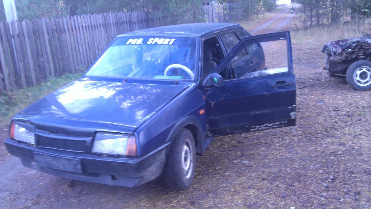 В один прекрасный день ко мне приехал очень хороший друг и сделал подарок в 3:30 ночи в октябре число не помню ну это не самое важное я очень сильно обрадовался этому, через неделю мы приступили к перегонки авто на новое место стоянки надо было проехать 9 км лесных и федеральных дорог это было очень страшно но я получил очень много адреналина потому что я сидел не в ваз 2109 а в 21099 с отрезанной жопой и битой мордой в левую сторону ну самое страшное на ней были откручены все стойки и 2 краба и при скорости 40 км/ч резина вежяла так как будто она шас в зарвется и после того как она по вежжит машину резко кидало в не понятном напровление это было прикольно конечно страшно было что в друг мы в кого небуть врежемся ну мы доехали нормально 99 я разрезал на запчасти так как небыло смысла делать ее шас буду заниматься 2109 ее надо переваривать она битая в правую сторону, надо менять ланжероны задние они згнили самое что мне нравиться в ней она финка 10 лет она ездила там потом ее пригнали в РФ и тут она начела подгнивать!
