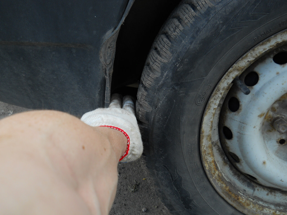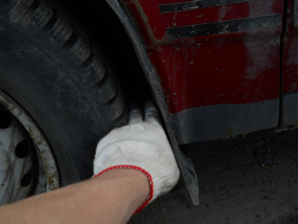 Какое расстояние между передним бампером и покрышкой переднего колеса, и какое расстояние между покрышкой и порогом? Оно должно быть одинаковым.