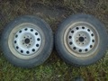 Зад — диски красные штампы ВАЗ 14", резина 175/65 Gislaved Nord Frost II шипы