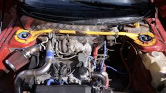 Теперь этот турбо монстр живет у меня. Я четко понимаю, что машина мне интересна, я получаю море адреналина и огромное количество невероятных эмоций за рулём. Именно по этому данный проект будет развиваться, скорее всего окончательной конфы никогда не будет, потому что мне хочется попробовать много интересующих меня вариантов тюнинга. Пока приоритет поставлен в направлении любительских гонок типа "тайм атак" или скоростного маневрирования ну и конечно свободных заездов по кольцу. Для этого осталось довести мотор до интересующих меня характеристик, так как машина имеет взрывную мощь после 4000 об., а до этого тяги нет, а для моих целей это не приемлемо. После доработки подвески рулёжка меня полностью устраивает, коробка передач тоже весьма хороша с парой 4.1 и на 104 ряду с усилением.