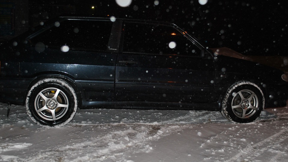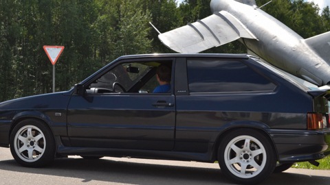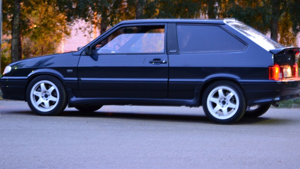 Задранная(!), на 14 дисках(оставил на зиму), с музоном(выменял на другой) и малиновой тонировкой(переклеил).