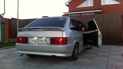 Поменяны повторители и передние поворотники на белые, наварен бэд бой, стоят светодиоды в подсветке номеров, и передних габаритах, Стоит би ксенон на 5000к, задние фары были заменены на сток и покрыты красным лаком, шеивинг багажника, стоят датчики парковки, перетянуты боковые стойки псевдокарбоном .Поменяны зеркала на сток. Тонер со лбом 5/20.