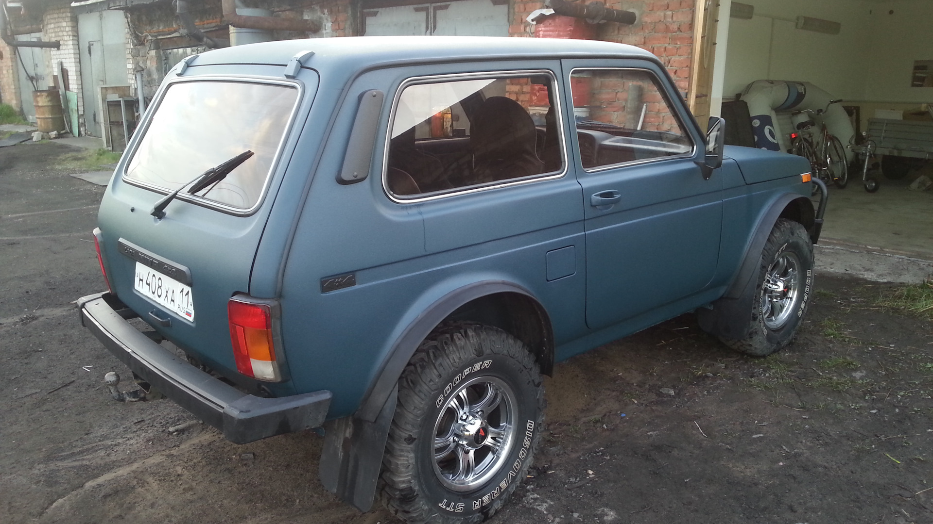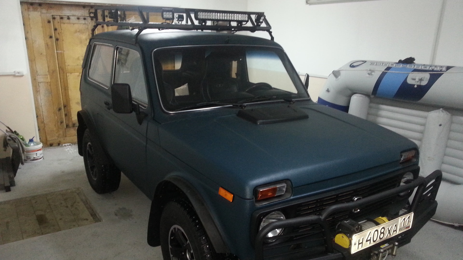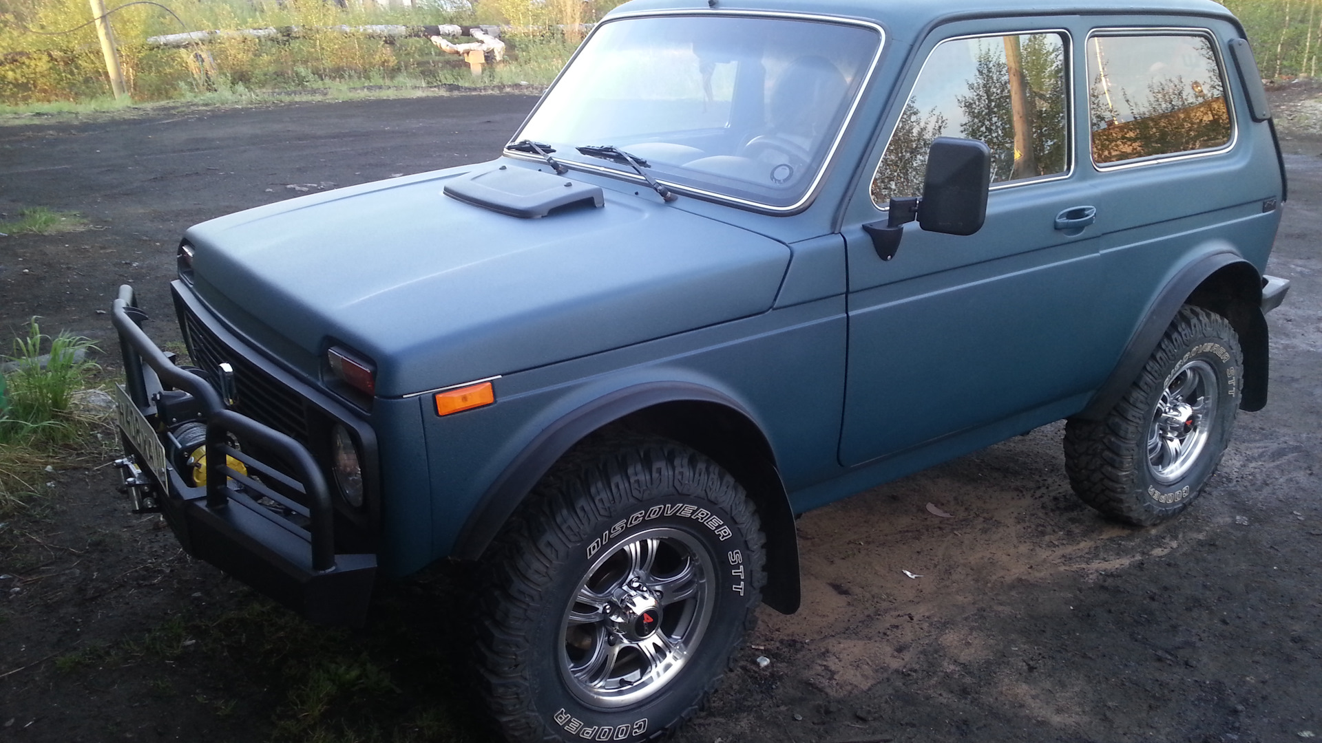 Карбюраторная Нива. Цвет мурена. Моментный рапредвал 04 от ОКБ двигатель, однрядная цепь привода ГРМ, регулируемая звезда распредвала, просаженные тарелки клапанов. Лифт подвески 4 см, Колеса Cooper Discoverer STT 30 дюймов.Резанные арки. Расширители 6 см. Усиленные передний лонжерон пластиной 3 мм. Главные пары 4,44 (ваз 2102). Червячные дифференциалы повышенного трения от автоспринтер. Независимое крепление редуктора переднего моста. Усиленные передниe ступицы "ВолгаАвтопром" с двухрядным подшипником от Iveko. Задние дисковые тормоза Tornado. Подрамник раздатки. Пониженная передача в радаточной коробке 3:1. Силовой передний бампер от ф-дизайн, Электрическая лебедка T-Max 6000. Экспедиционный багажник собственного изготовления. Светодиодные противотуманные фаны а багажнике 4 шт по 6 светодиодов и 1шт 42 светодиода. Оптика главного света WESEM от "Икаруса"., Электропривод стекол, открывания багажника, подогрев сидений, Улитка от ваз 2108.