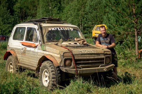 Впервые. Впервые наш гоночный болид был готов к выезду на соревнования с запасом времени. Правда, этот запас был в 2 часа. Успел прикрутить зеркало, смотать лебедку и полюбоваться на новенькие гранат…