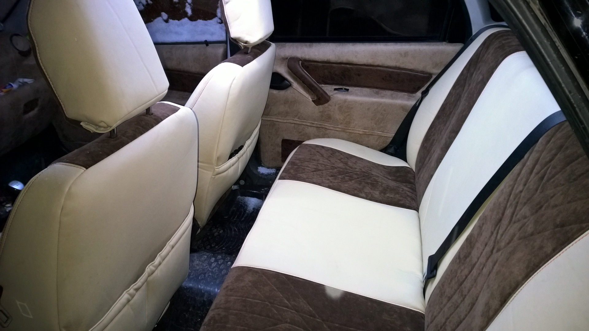 Комплектация норма плюс — (ЭСП) эл.подъемники перед, зад. ЭУР(уже сломаный), эл.корректор фар электро, дисковые тормоза с насечками и перфорацией R 15 Alnas. Рычаги стингер. Уже Слик 16/195/50 лето, Резина Zeta Китай. Зима 15/195/55, Тойо шипы. Вроде всё) для комфорта вполне достойно. Салон под себя из велюра.