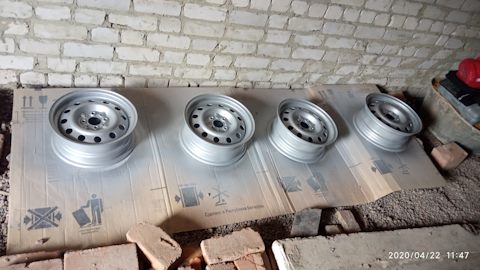 Решил привести в порядок диски. Ржавчина была жесть. Пробовал вручную чистить, потом все таки отдал на пескоструйную обработку. Далее балон грунтовки кислотной в два слоя, потом балон универсальной грунтовки три слоя, и в завершении два балкона эмали для дисков в три слоя. Результатом доволен.