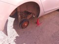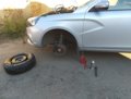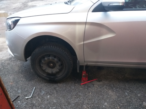 Настала пора переобуваться на лето. И конечно же свободное время нашлось только вечером после работы. Ну приезжаю в гараж, достаю колёсики, домкрат там и прочую ерунду. Снимаю переднее к…
