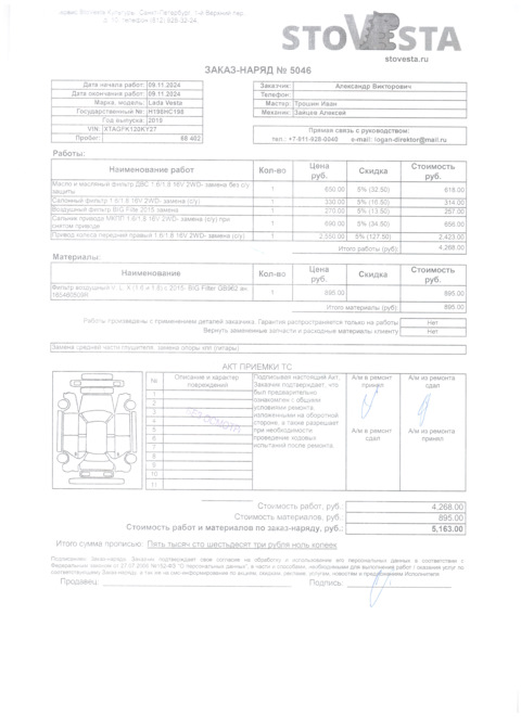 - Очередное ТО (масло, расходники, колодки, тормозная жижа.