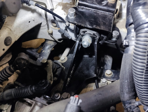 Для установки необходимо демонтировать кронштейн опоры кпп и два болта крепления опоры к лонжерону. (…