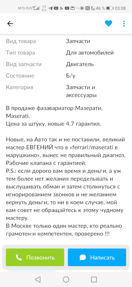 Нашёл объявление о продаже фазика на авито, и подумал не тот ли Евгений?