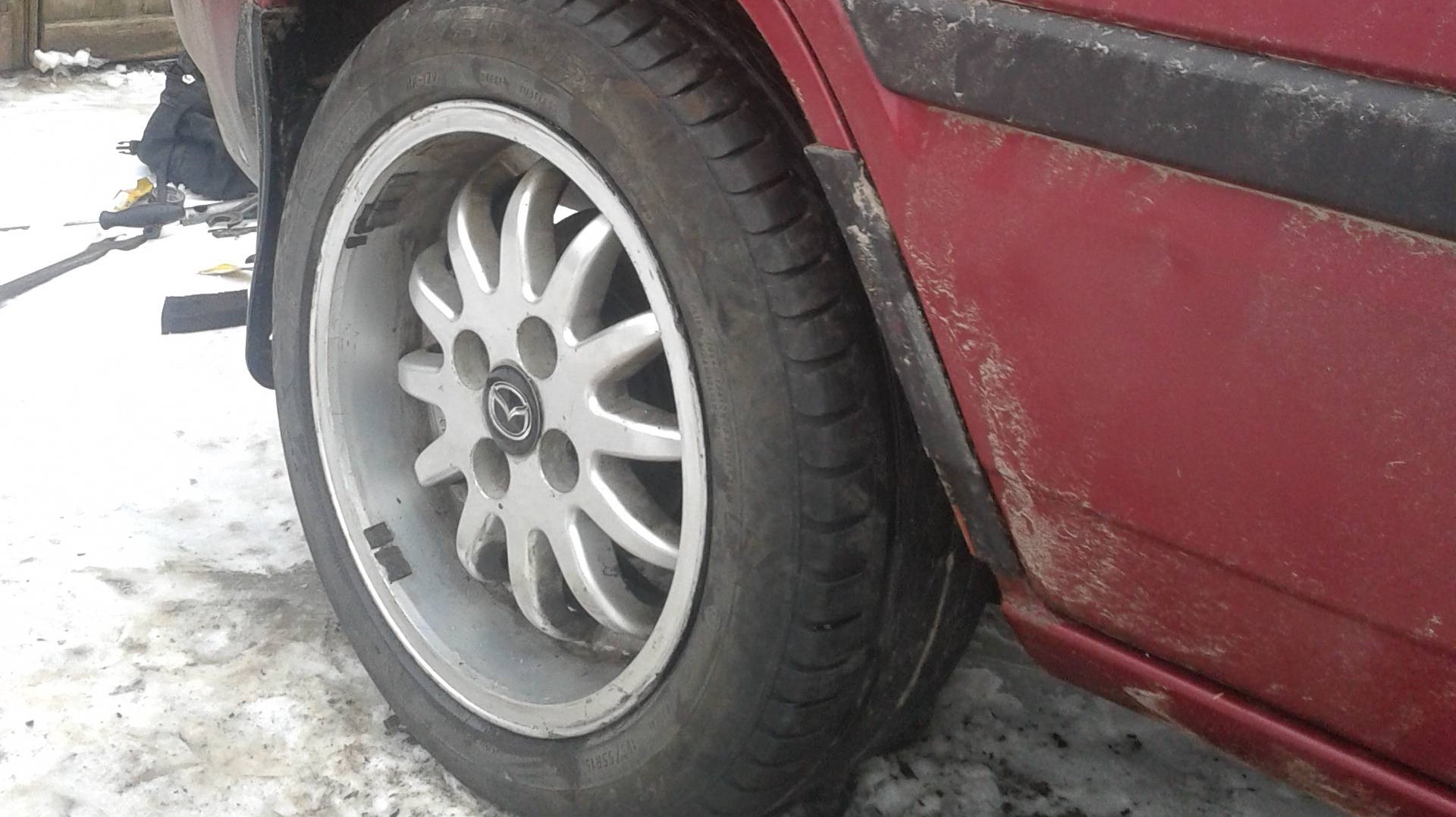 Зима: перед белка R14, зад континенталь R15, на штампах.