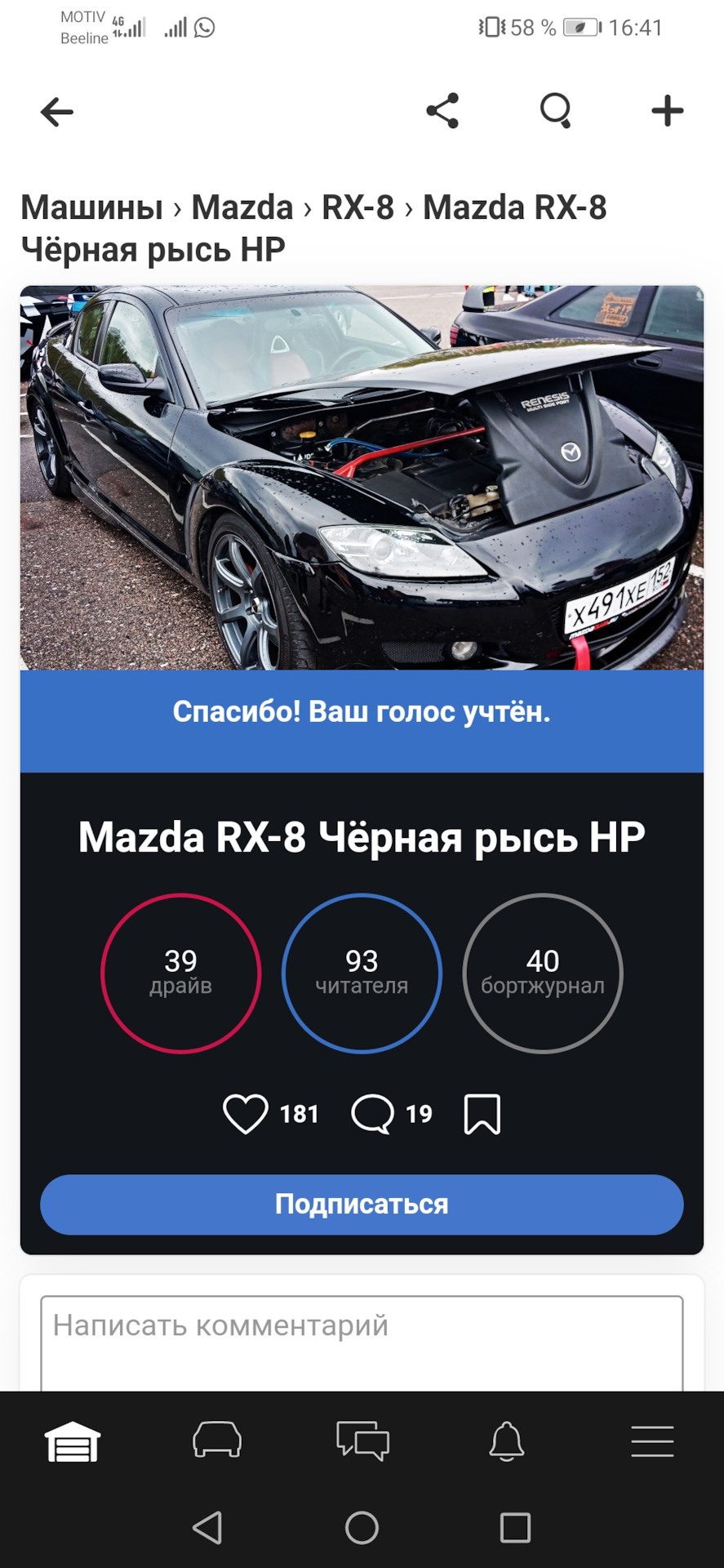 Я езжу на Mazda RX-8 Чёрная рысь HP (до этого — Mazda 6 и Lada 2113)