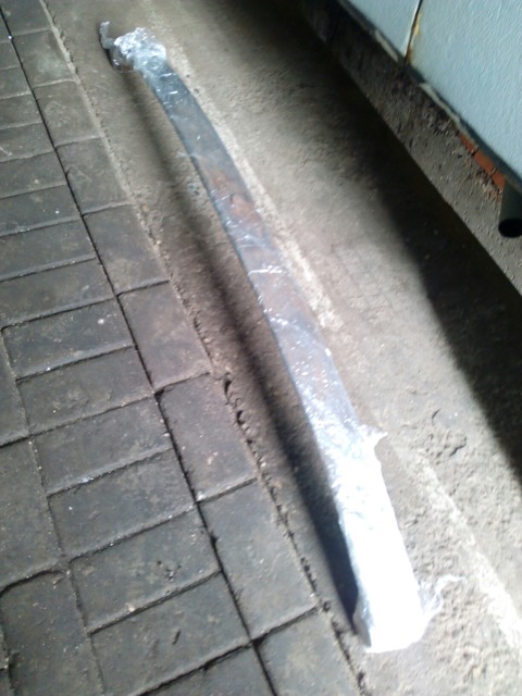 Устал искать бампер и решил сделать сам. Заехал в стройматериалы купил два конька(1500*250) и заклепки(4*6).И начал мастерить. Получилось вроде неплохо.