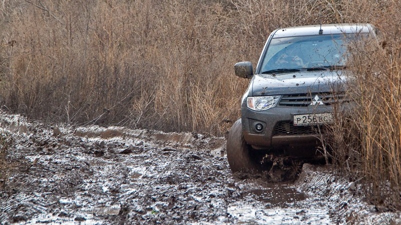вопрос, скорость 5 км рыхлый мокрый снег 10…15 см только задний привод, после остановки в таких условиях поедет Л200 или будет буксовать?блокировки и передний мост не включаем