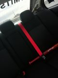 — Салон автомобиля полностью в чёрном исполнении, с красными ремнями безопасности