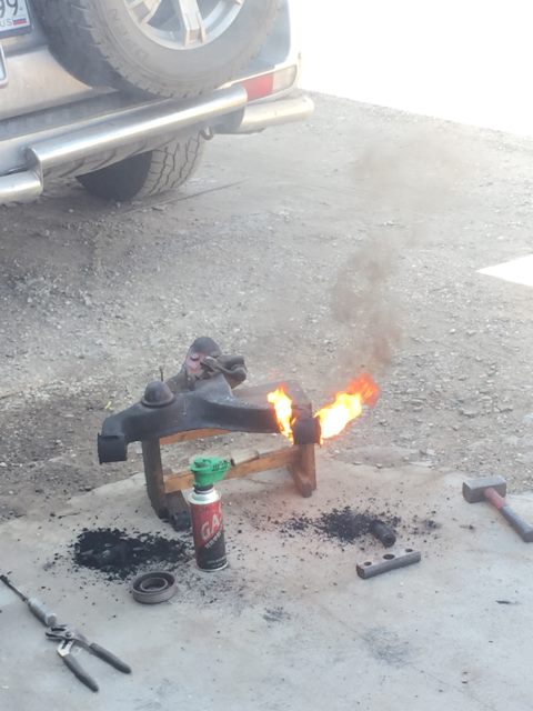 передние ступицы основательно закисли в кулаке, пришлось его снимать.