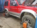 Итак, паджеро 2, коротыш, цвет красный.Автомат, суперселект, бензин. Гбо 4 поколения . 6G72, свистящий роликами и грохочущий гидриками.Ходовка требующая ремонта, шумы и вибрация при подключении передка и кучу всяких мелочей от неработающих лампочек в приборке до течи шлагов маслянного радиатора.Зато имеем хорошую раму с читаемыми номерами и крепкий кузов, не требующий серьезного вмешательства(за исключением петель задней двери), за это отдельное спасибо прежнему хозяину.