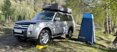 Крепление тента "душ/туалет" к поперечинам багажника. Дополнено видео-установки.