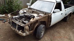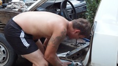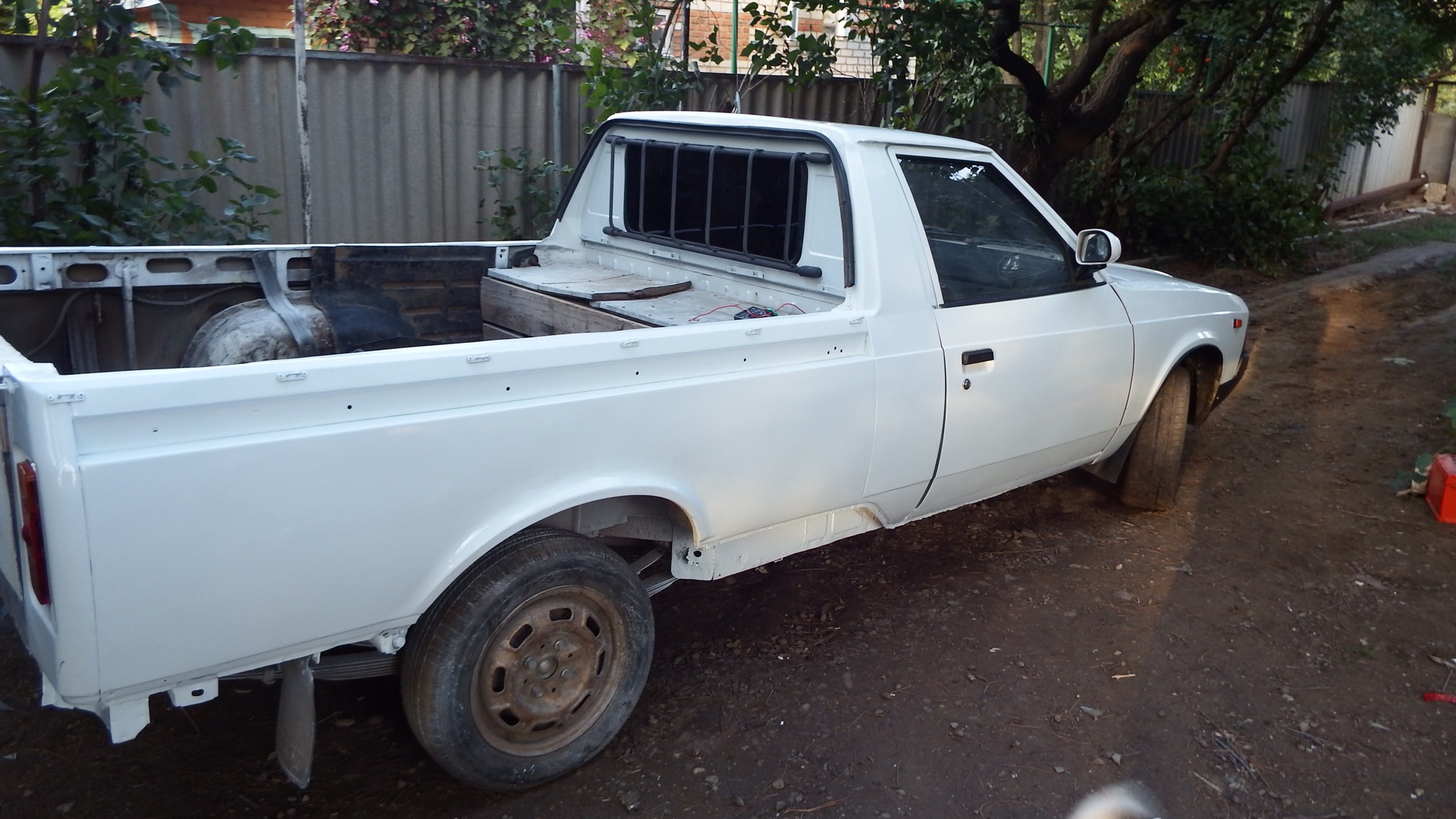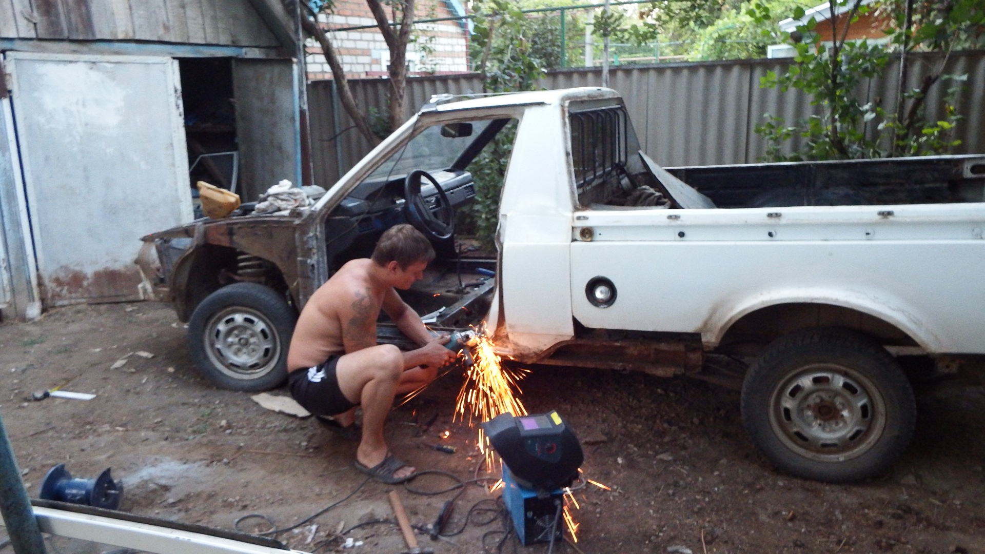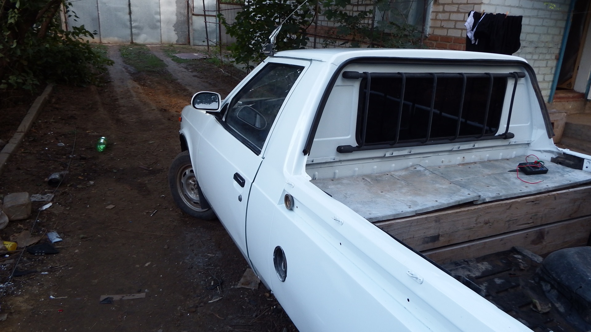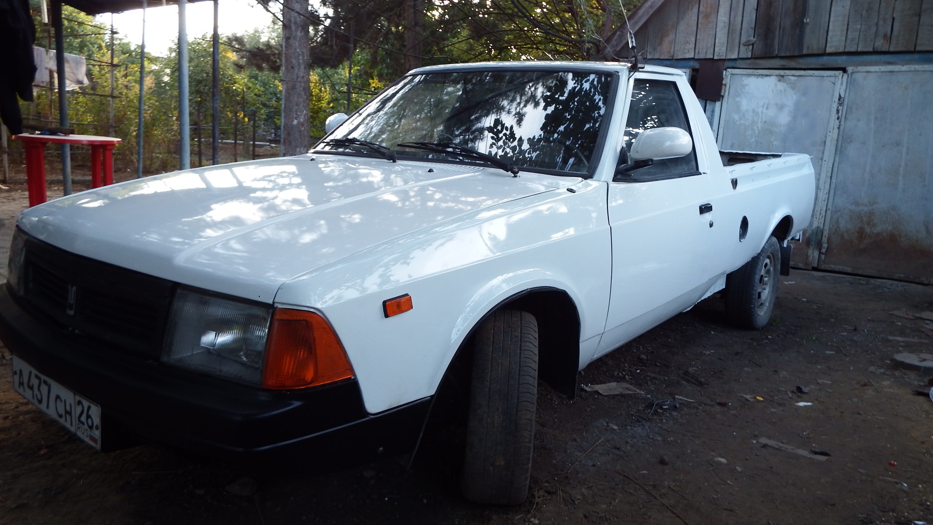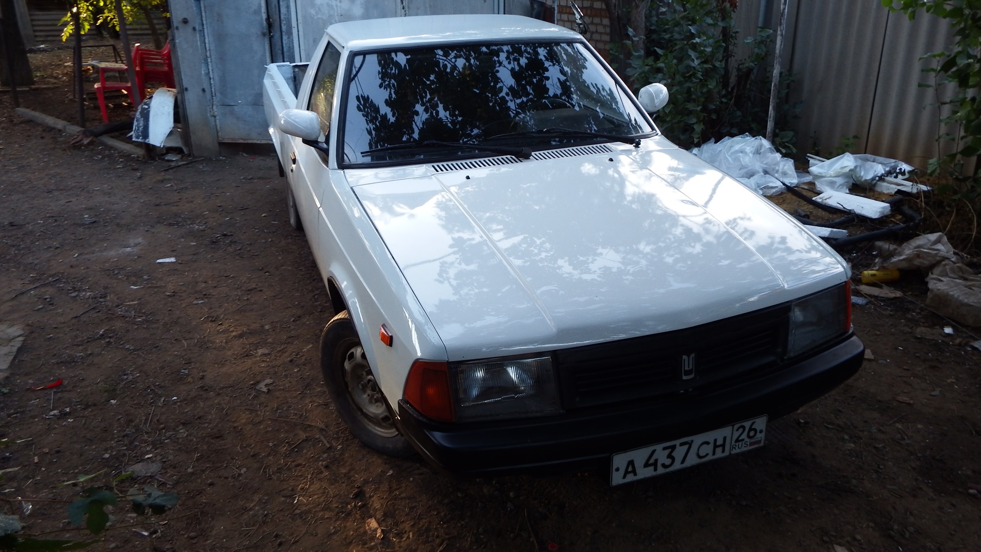 В общем негаданно нежданно судьба свела меня с этим ныне красивым авто. На момент его покупки видел я такой аппарат в первый раз, и просто ради любопытства стал расспрашивать у хозяина сего чуда про его судьбу, уж больно жалко выглядела машинка. В процессе разговора проскочило слово продаю и я был очень удивлен цене сего аппарата при наличии на нем установленного и вполне рабочего ГБО. Цена составляла 25 килорублей, ну и мы с отцом конечно же его купили. Отец у меня фермер и говорит что давно хотел себе что то типа такого. Хотел ИЖ Оду по тому как он тоже не знал до встречи с ним о существовании передне приводного москвича пикапа. В течении двух лет по мере эксплуатации была полностью заменена передняя подвеска (старая была раздолбана в сопли, правая стойка вообще не шевелилась не говоря о всевозможных шаровых, сайлентблоках и втулках) заменен двиг на двиг от (москвич 412) потому что его двигатель был собран из какого то говна и капиталить его не представлялось возможным. Передний бампер приколхозили на него от ваз 2110 выглядел этот винигрет прямо скажу не очень и я нашел разбитый бампер от 2141, у него состояние было даже более чем убитое, не хватало выбитых кусков размером по 10-15 см. Поколдовал над ним с паяльником вышло то что стоит на машине на фото. Кузов был гнилой, пороги закрыты пластиком, низа крыльев тоже, а под пластиком естественно гниль, от бортов по низу отваливались куски шпаклевки которой при прошлом псевдо ремонте пытались закрыть выгнившие дыры. И конечно же поступала в салон вода (москвичеводы меня поймут) Ну и вот этим летом 2014 года я решил его полностью переварить и покрасить. Опыта в этом деле хоть и очень мало, но получилось на мой взгляд и взгляд соседей более чем хорошо, но судите сами.