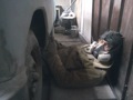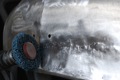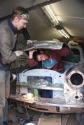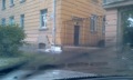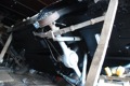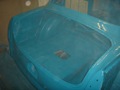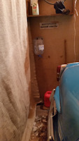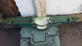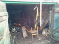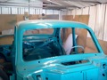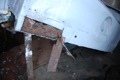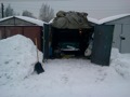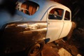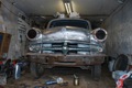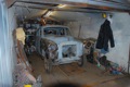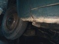 Прогнившие снизу двери гаража открылись не сразу, сначала пришлось взять лопату у сторожа и срезать немалый слой дерна. И вот распахнулись ворота и я увидел его. Задняя часть машины провалилась в грунт, так как крыша у ворот протекала и доски из которых был пол сгнили аж до середины гаража. Да к тому-же еще и колеса за столько лет стояния спустили. Так что машинка мирно лежала на мосту в глубокой спячке.