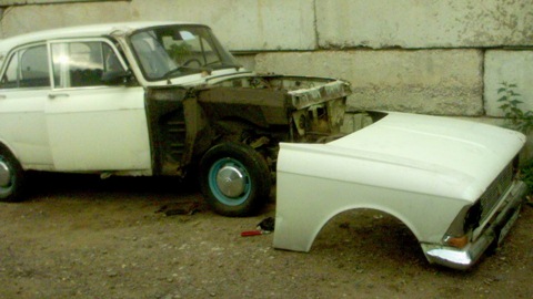 Кузов: теперь 408 живет в кузове 97 года, капот и крышка багажника 97 год. Двери, передние крылья и фартук — 74год (крылья и фартук гнилые, надо менять).