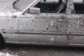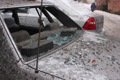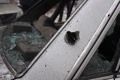 Попадание снаряда в нескольких метрах от машины. Волк уцелел. После замены колес уехал своим ходом, ждет ремонта.