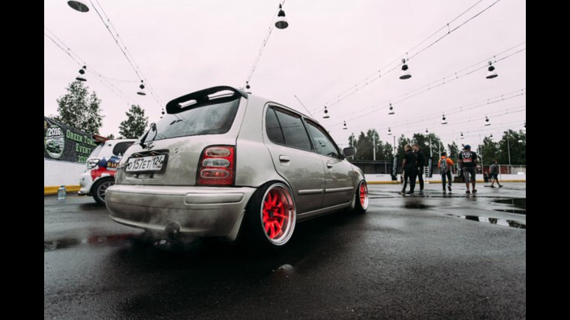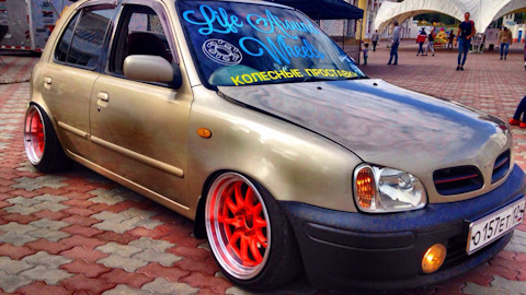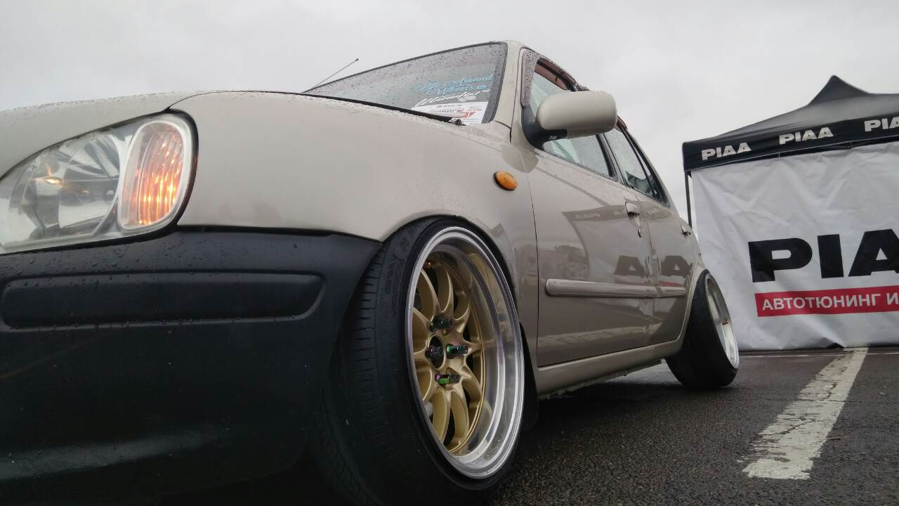 Отличный Марч!) Резину сильно жрет с таким развалом? Тоже думаю заморочиться, правда на мою Миру сложнее будет найти все необходимые для этого ништяки, по подвески только пружины жесткие с занижением поставил