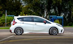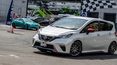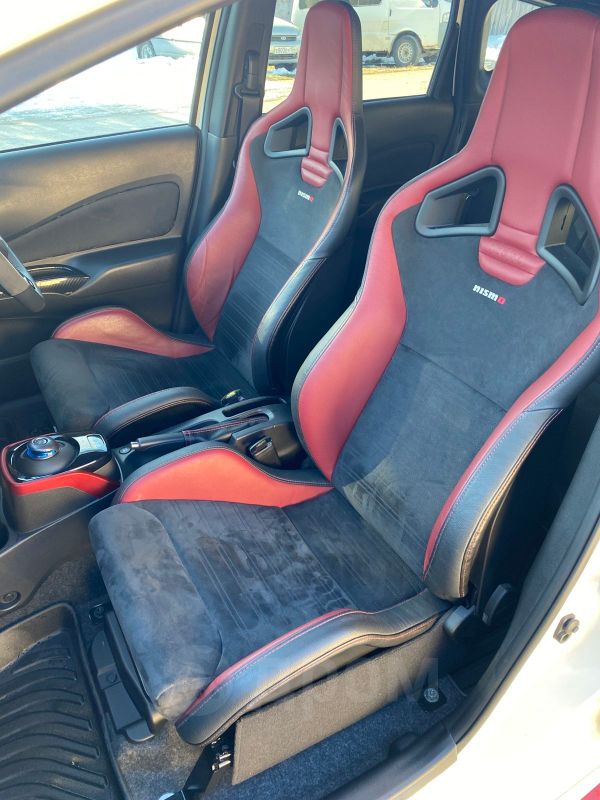 Теперь немного истории. В 2013 году Nissan ввела бренд NISMO. Благодаря спортивному опыту NISMO доработал такие бескомпромиссные спорткары как 370Z и GT-R, свою долю внимания от тюнеров NISMO получил и самый маленький представитель компании — Nissan Note. Премьера заряженной версии прошла в Японии летом 2014 года. Спортивная модификация хэтчбека была предложена в двух вариантах — Note Nismo и Note Nismo S. В стандартной версии тюнер постарался сохранить баланс между эффективным расходом топлива и спортивными показателями оснастив малыша 3 цилиндровым двигателем на 98 л.с, в то время как в NISMO S основное внимание было уделено именно техническим характеристикам. В Nismo провели колоссальную работу, "топовую" версию оснастили 4 цилиндровым мотором с высокой степенью форсировки в 1600 куб.см выдающим 140 л.с. и 183 Нм крутящего момента. Помимо двигателя доработке подверглись: шасси, подвеска, и конечно аэродинамика Nissan Note. Были установлены высокопроизводительные дисковые тормоза, титановый выхлоп, кузов автомобиля усилен пятью поперечными распорками. Обули малыша в 17 дюймовые литые диски от Enkei, а в салоне штатно установили спортивные кресла и спортивное рулевое колесо. Для тех, кому и этого было недостаточно, опционально ставились ковшеобразные сидения NISMO Recaro.