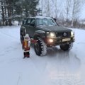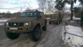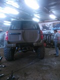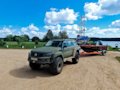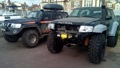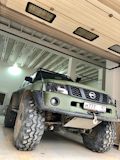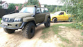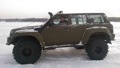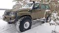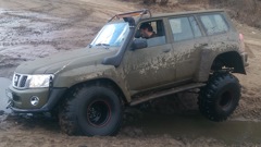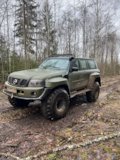 Патрол Y61 с мотором td42 атмосферник, МКПП, лифт подвески 8 дюймов, задние рычаги и панара опущены на 17 см, передние рычаги опущены на 25 см, передняя панара и рулевая на 12 см. Кастор отличный, колеса наклоняются в повороте как у 124 мерса.