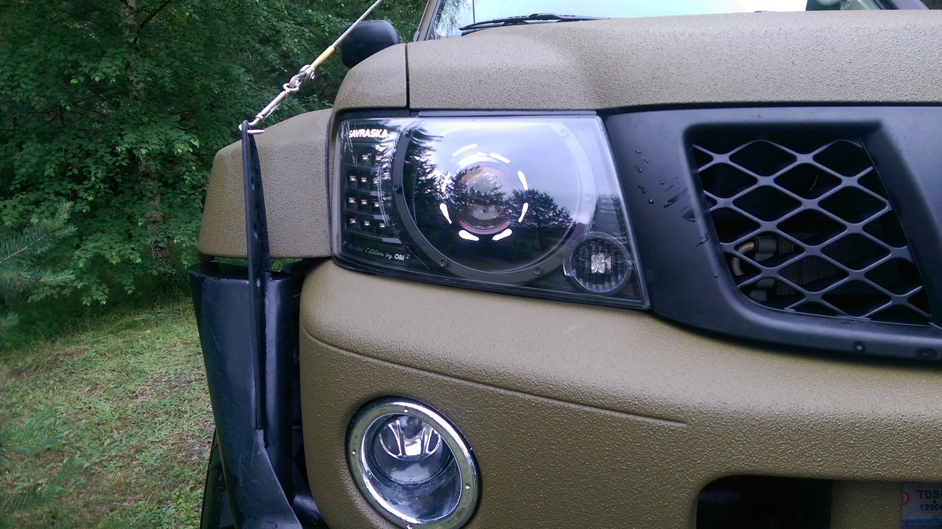 Блокировки АРБ, полная пневмосистема, диодная балка Ex-Road, задний допсвет Ex-Road, лебедки KingOne 12000, передняя усиленная с большим редуктором, задняя с маленьким, силовые трубы, защита рулевых тяг, веткорезы, шноркель, исландские расширители арок, силовые пороги, фаркоп, замена заднего моста, дисковые тормоза. Покраска RAPTOR.