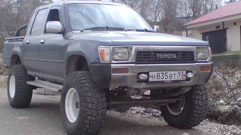На момент покупки была toyota hilix pic-ap мостовой 28дизель На ней начинал познавать офф-роуд но у неё тесный салон сзади кузов в который ничего ценного не положеш и рессоры с которыми я намучился А в целом прекрасный авто