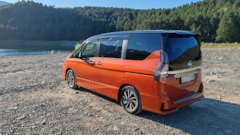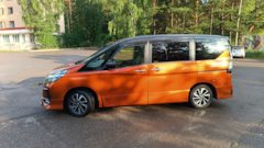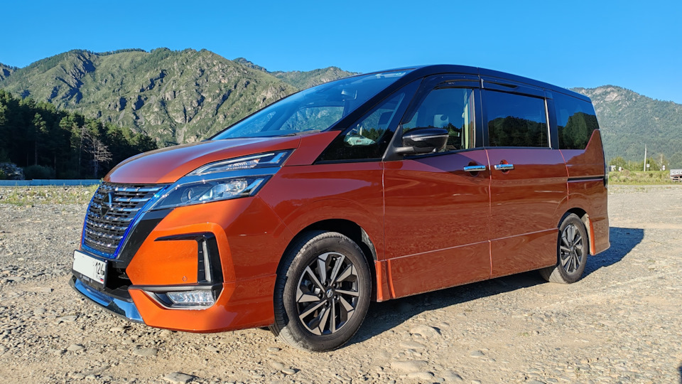Nissan Serena ё-Power РЕСТАЙЛИНГ (кузов минивэн), выпускается с 09.2019 года, приобретенное мной авто произведено 11.2019, комплектация "G" (максимальная), из дополнительных опций — круговой обзор (идёт вместе с патронниками), зимний пакет дополненный подогревом руля и сидений, электронный ручник+пропилот(адаптивный круиз контроль), боковые подушки безопасности, потолочный монитор, пробег на момент покупки 30000км, куплен на площадке с фиксированной ценой или для понимания, японском автосалоне, цвет Оранжевый с Чёрной крыше — Orange — XFR. Куплен 09.2022 (не проходным), ввезён в декабре 2022 по достижению трёхлетнего возраста.