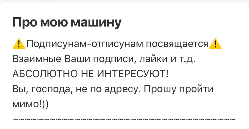 Взаимные Ваши подписи, лайки и т.д. АБСОЛЮТНО НЕ ИНТЕРЕСУЮТ!